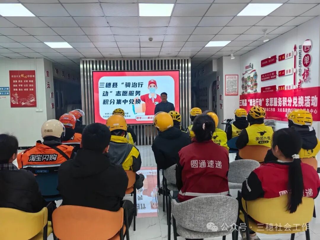 三穗县委社会工作部制定了详细的积分兑换规则,建立全流程闭环管理机制,明确专人负责积分统计管理,每月定期核算并生成骑手个人积分明细,确保活动规范有序开展。后续将根据“骑治行动”志愿服务活动开展情况,持续优化积分管理制度、丰富兑换品类、拓展参与场景,进一步激发骑手群体的责任感与使命感,让这支“移动力量”在文明城市创建、社区服务保障等工作中发挥更大作用,构建起“人人参与、人人尽责、人人共享”的基层治理新格局。