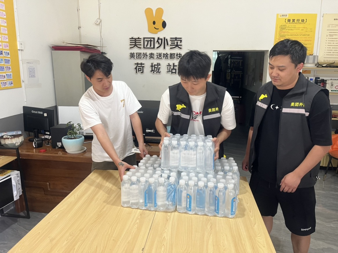 图为六盘水市委社会工作部联合各单位为外卖站点发放免费瓶装水(受访者供图)